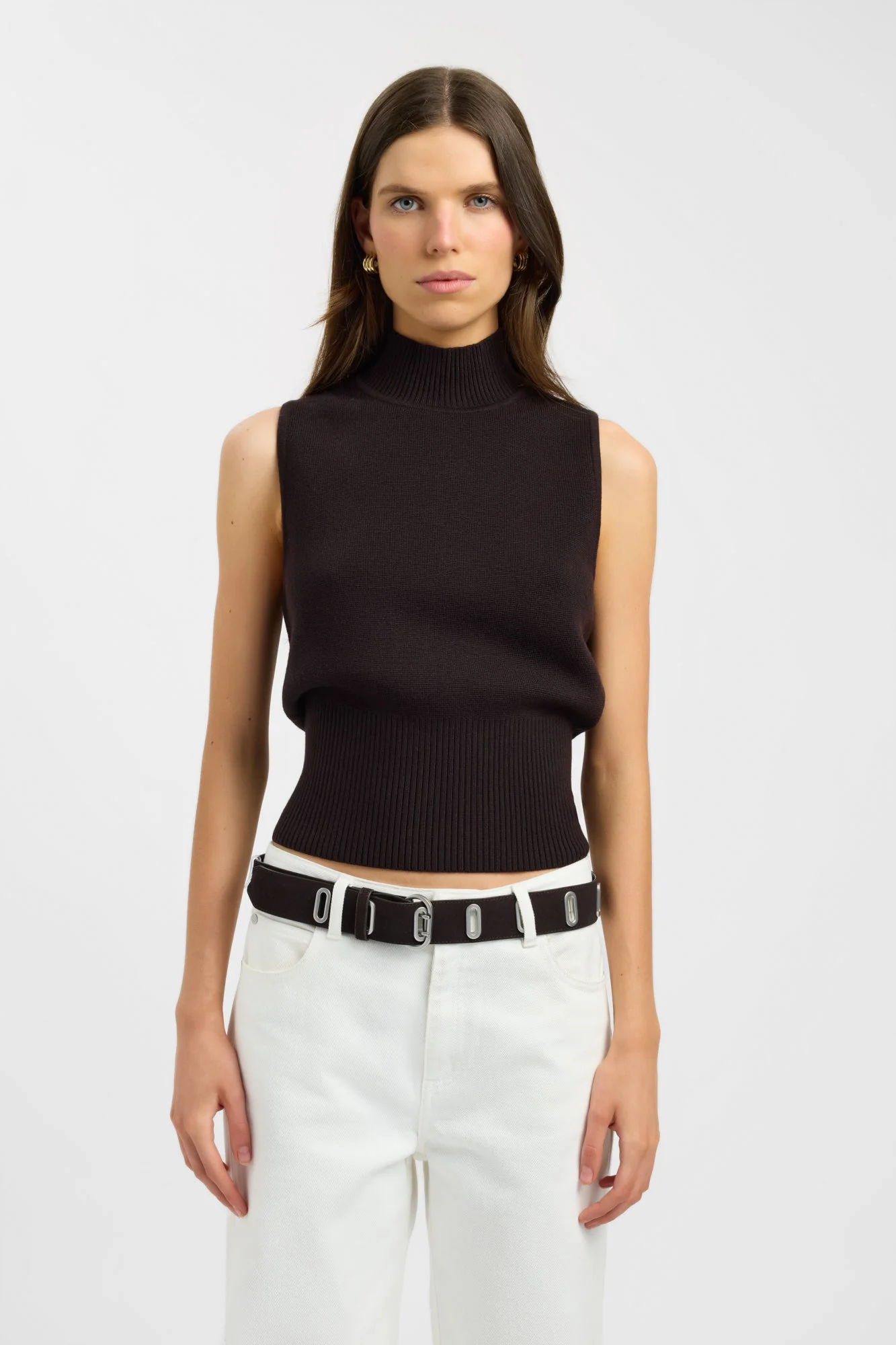 Elegant and minimal, the Dalton Tank is a timeless wardrobe essential. Crafted from a soft wool knit, it features a high neckline and sleeveless design for a refined, structured silhouette. The fitted waistband contrasts beautifully with the relaxed upper body, creating a flattering shape that’s both comfortable and polished.