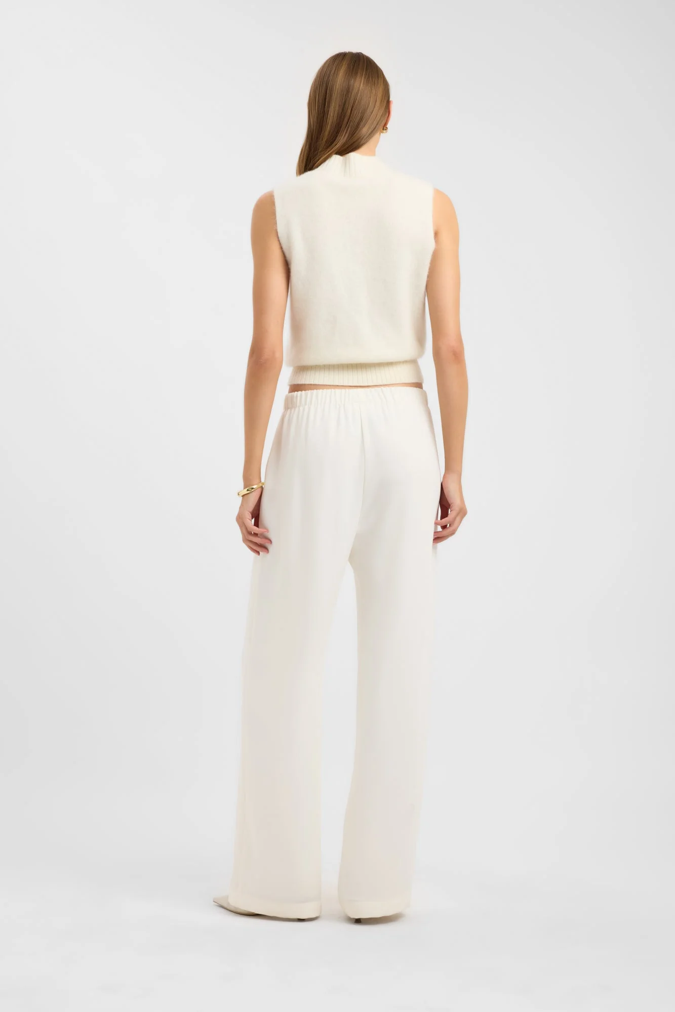 The Geneva Tank, crafted from a soft wool blend, features a high neckline and sleeveless design. The fitted hemline allows for a subtle relaxed fit around the waist, offering a comfortable and laid-back silhouette. Finished in a winter white colourway, this tank adds a touch of effortless elegance to your wardrobe.